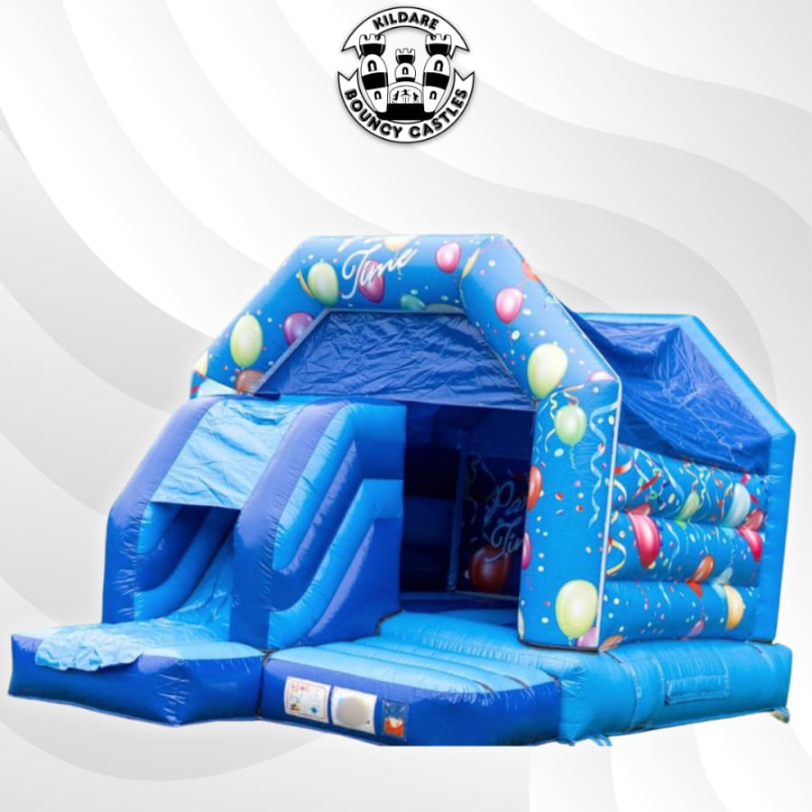 Get the party started with our eye-catching Blue Party-Time Front Slide Bouncy Castle – 12ft x 18ft, ideal for children’s parties, school fun days, and events of all kinds across Kildare and surrounding areas. This spacious inflatable features a fun “party-time” theme, generous bounce area, and a built-in front-facing slide to keep kids smiling all day long.