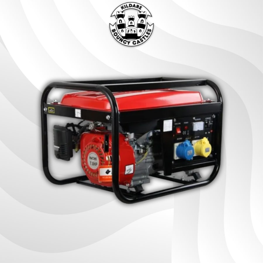 At KildareBouncyCastles.ie, all generator hires include delivery, setup, and collection across Naas, Newbridge, Celbridge, Clane, Maynooth, Athy, Kilcock, Kildare Town, Leixlip, Monasterevin, and surrounding areas.