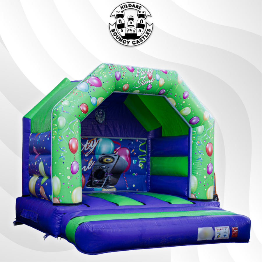 💚💜 Green & Purple Party-Time 12ft x 12ft Bouncy Castle – Hire in Kildare & Surrounding Areas